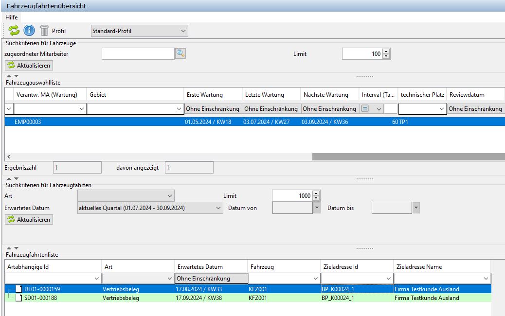 Fahrzeugfahrtenübersicht