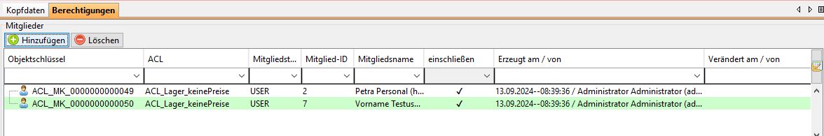 Ordnen Sie im nächsten Schritt die Benutzer zu, für die diese ACL gelten soll. Die Zuordnung kann einzeln per Benutzer erfolgen oder auch als Benutzergruppe oder über Abteilungszugehörigkeit. Die zugeordneten Nutzer werden dann im Abschnitt "Mitglieder" angezeigt.