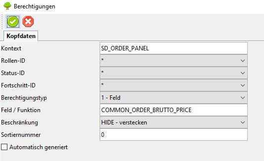 Dieses Beispiel blendet das Feld "Bruttopreis" komplett von der Maske aus.