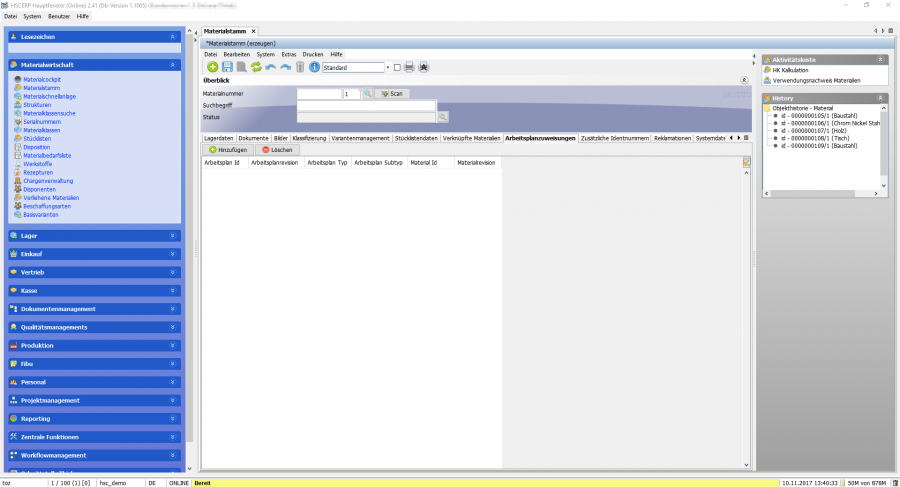Der Tab Arbeitsppanzuweisung im Materialstamm