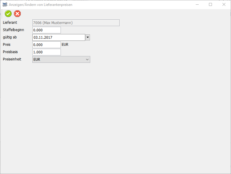 Materialstamm/Einkaufsdaten/Lieferantenstaffelpreise/Ändern von Lieferantenpreisen