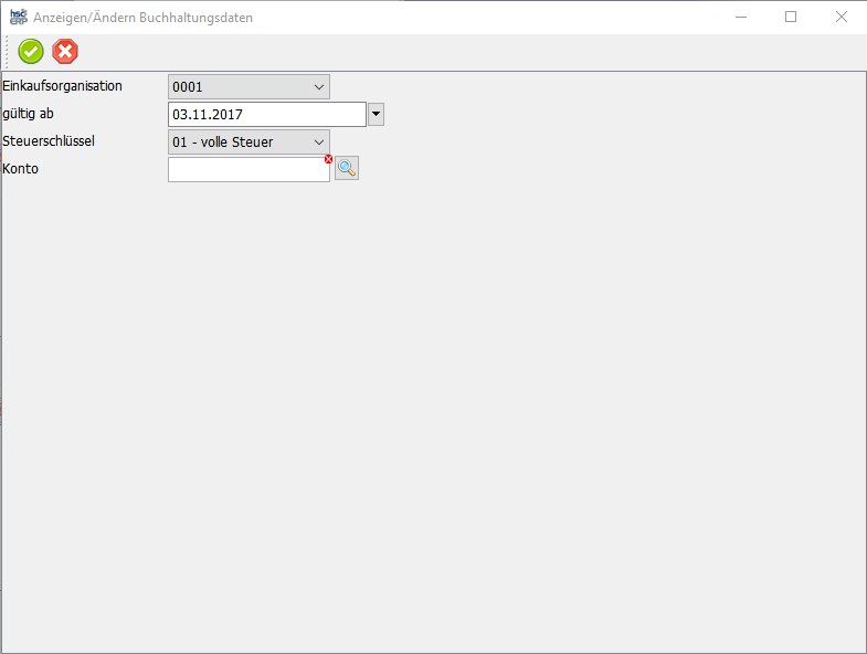 Mit dieser Funktion haben Sie die Möglichkeit Buchhaltungsdaten für den Einkauf des Materials einzupflegen.